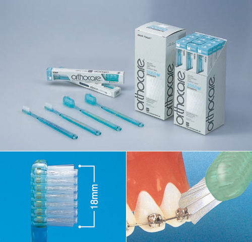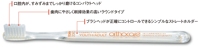 毛先が山型なので、口腔内の矯正装置が複雑に入り組んでいる治療初期に効果的です。